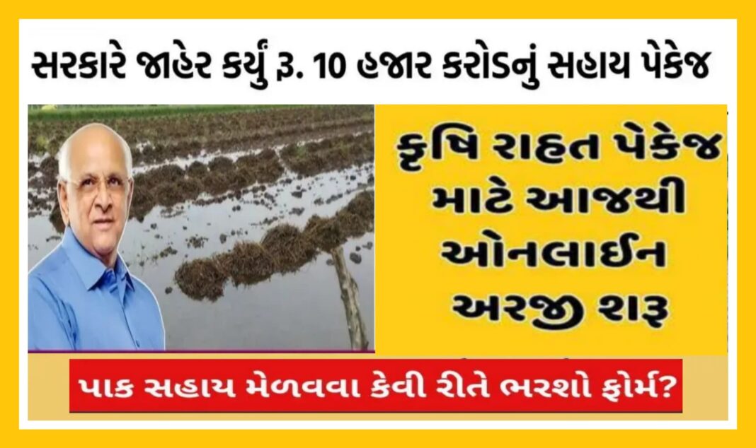 રાજ્ય સરકારે કમોસમી વરસાદથી થયેલા પાક નુકસાન માટે ખેડૂતોને મોટી રાહત આપતા ₹10,000 કરોડના ઐતિહાસિક કૃષિ રાહત પેકેજની જાહેરાત કરી છે. આ ગુજરાતના ઇતિહાસમાં પાક નુકસાન માટેનું સૌથી મોટું સહાય પેકેજ છે.